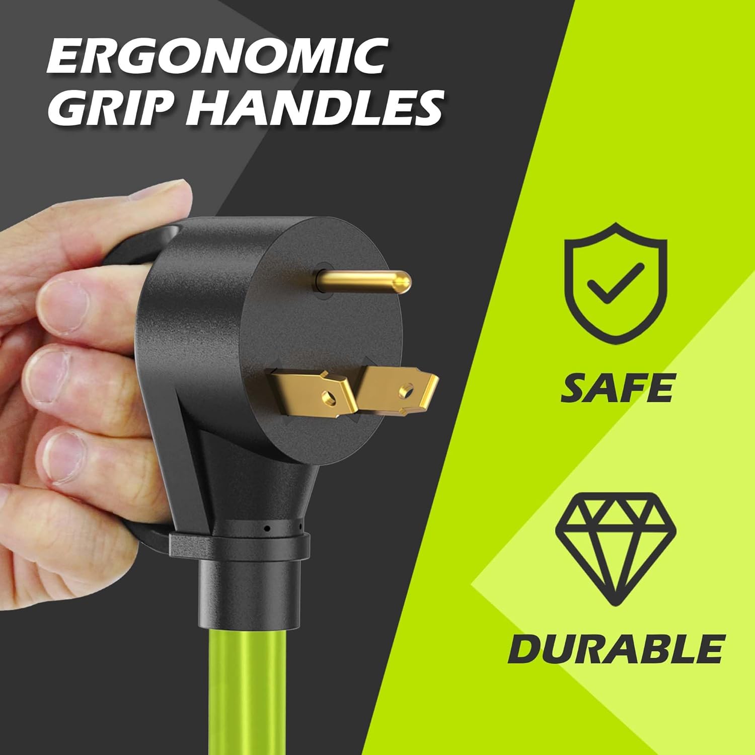 - Male: 30 Amp 125V NEMA TT-30P for RV camper and 30 Amp generator outlet.