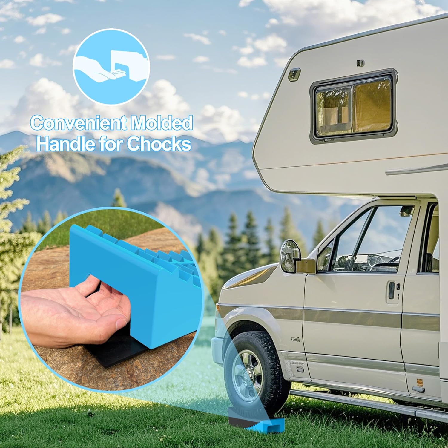- NON-SLIP DESIGN: Our RV Levelers are equipped with a non-slip rubber pad to prevent the tire block from sliding during parking, allowing the wheel to park on the tire block more smoothly and safely. Provide you with a safer environment for use!