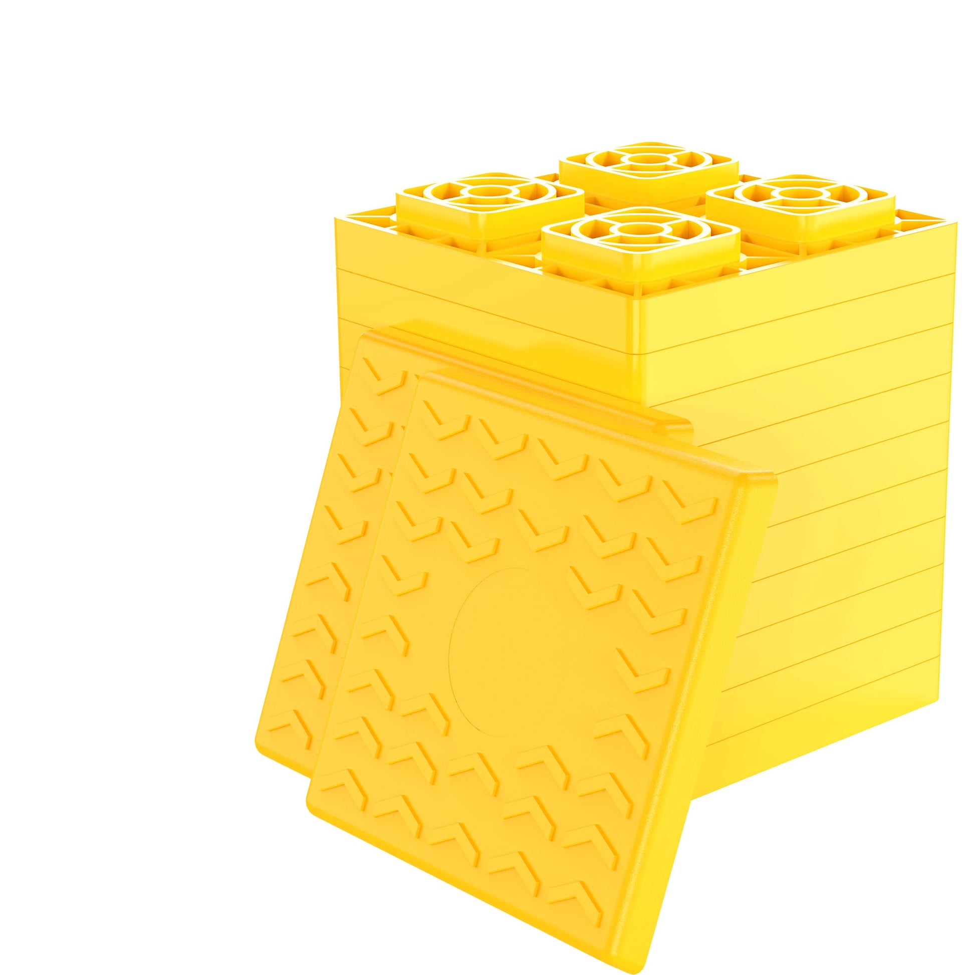- Customizable Leveling: Our camper leveling blocks provide a customizable solution for leveling your RV. Simply stack the interlocking blocks into a pyramid shape to the desired height needed to raise your RV and drive onto the stack. Each block added increases the height by 1 inch, allowing for precise leveling.