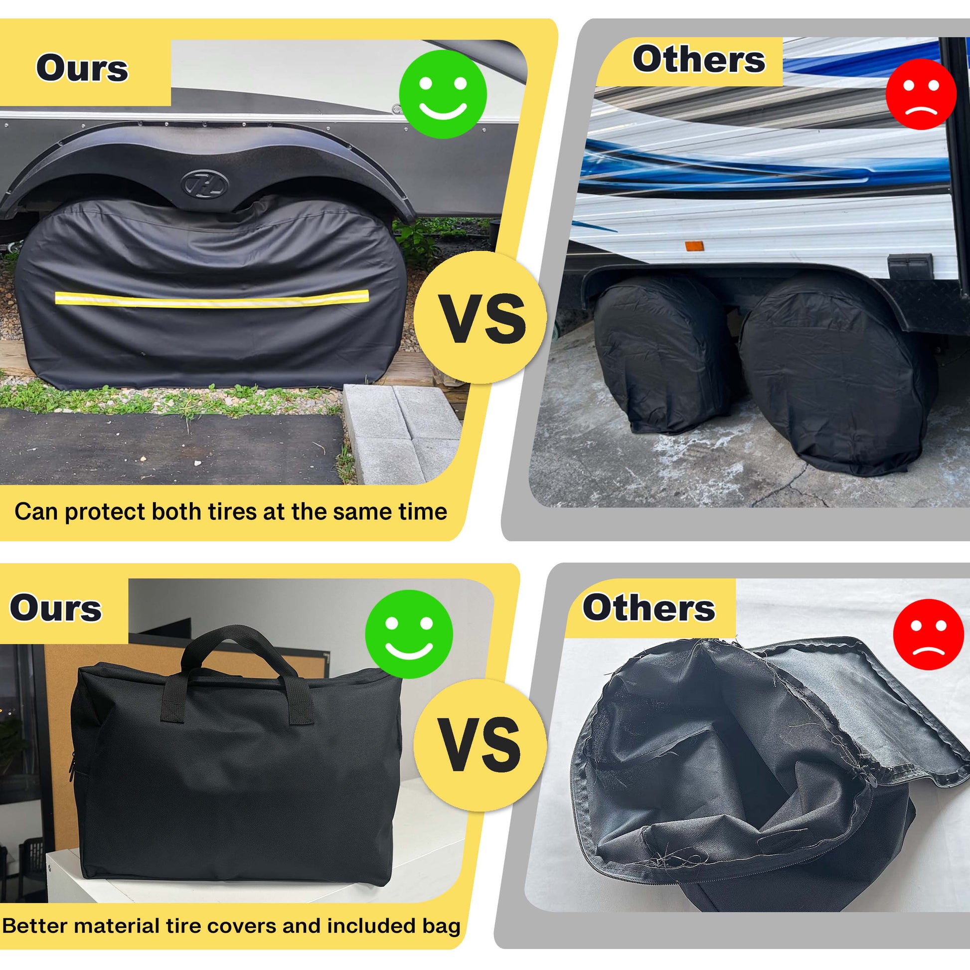 - Easy to Use: No other tools are needed, one person can easily install the double axle tire covers. The buckle design is easier compared to the elastic cord products.