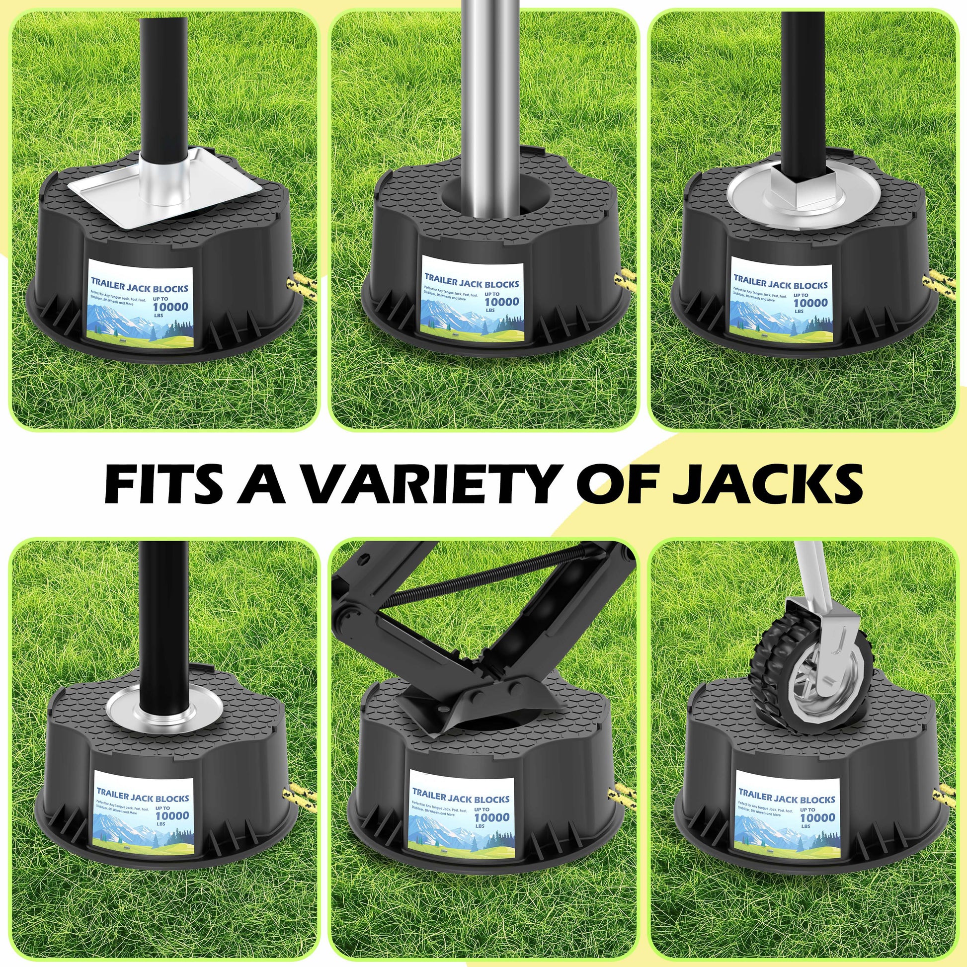 Trailer Jack Block, 4 Pack Heavy Duty Camper Jack Pads UV Resistant Up to 10,000 lbs Leveling Block for Trailer, Tongue Jack, 5th Wheels, Black