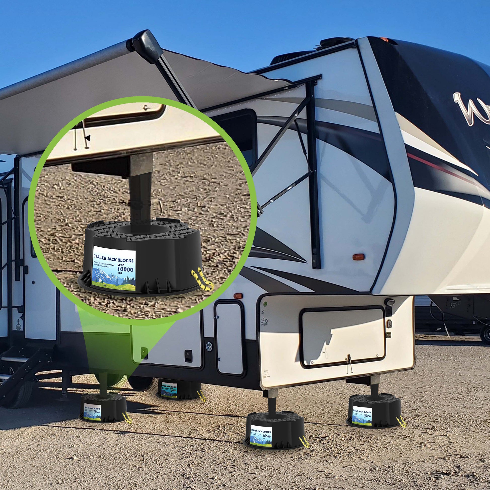 - High-quality Materials: CircleRoad RV leveling pads are made of super strong quality plastic. RV jacks & stabilizers are UV, oil, water, heat, and dirt resistant for durability and can hold up to 10,000 lbs per jack block.